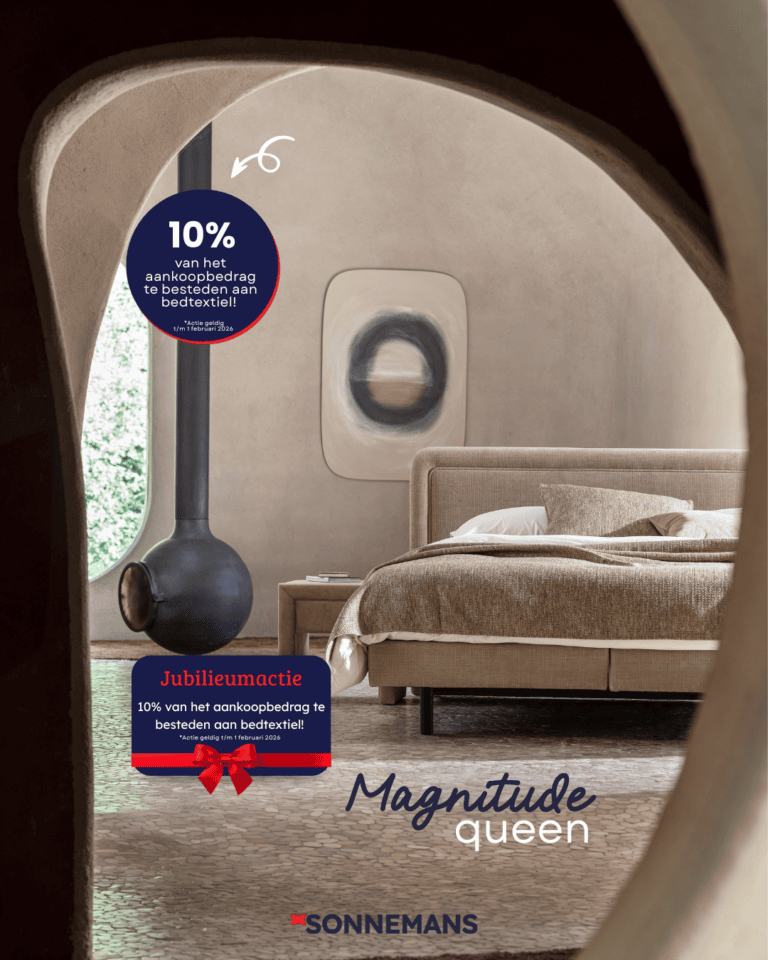 - 10% van het aankoopbedrag terug als cadeaubon bij aankoop van boxsprings, bedden of matrassen.