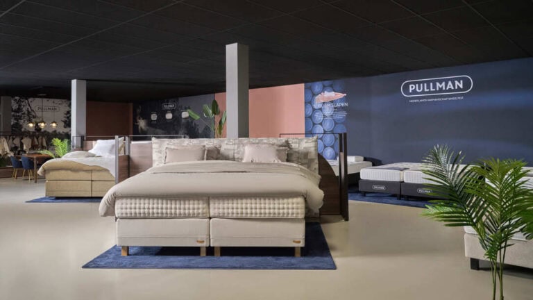 Door hoogwaardige materialen en ambachtelijk vakmanschap, staat Pullman garant voor jarenlang aangenaam slaapcomfort. Benieuwd over de verschillende mogelijkheden? Bezoek onze showroom om de stoffen, hoofdborden en comfortniveaus van Pullman te bekijken.